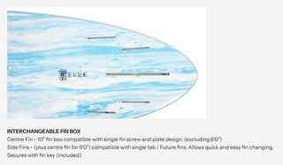 5 FIN SET UP - Ride as thruster or quad set up with your favourite single tab fins. 2X Soft tip PU fins and fin key included.