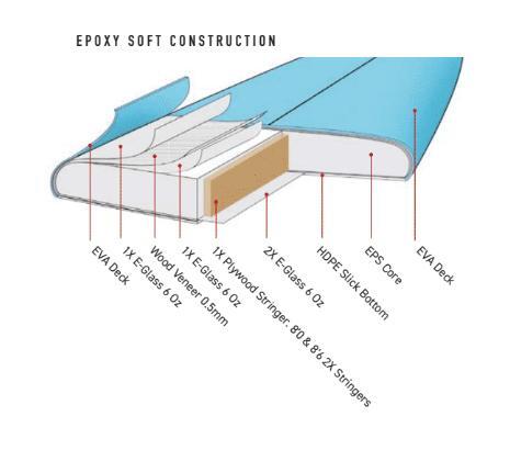 EPS CORE - Highly waterproof & lightweight. 2X stringers increase board strength and maintain rocker.