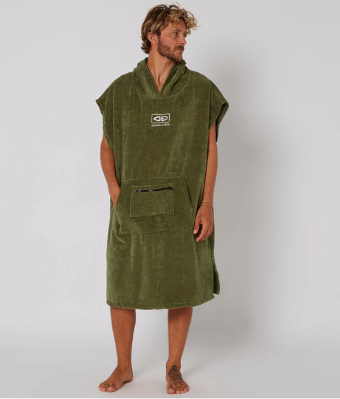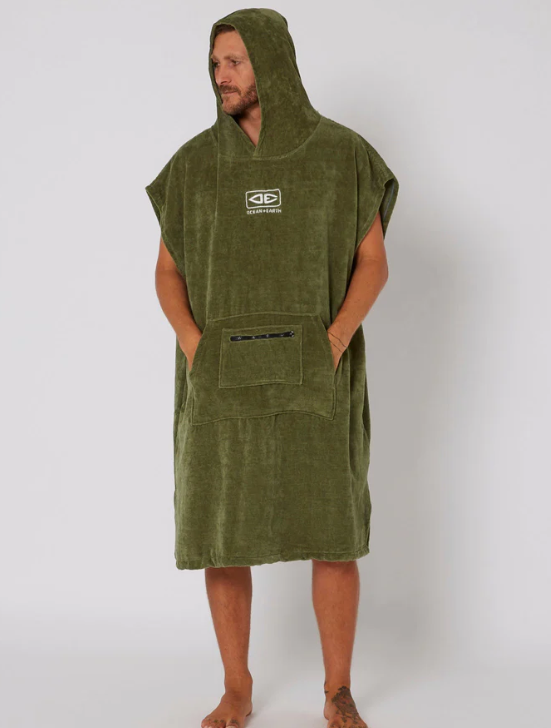The Mens Corp Hooded Poncho Towel is perfect for drying off and changing out of your wetsuit or swimwear. With oversize sleeve openings, zip patch pocket and in 340GSM comfy cotton velour this is an easy poncho that you can slip in and out of after a day at the beach. Warmth with comfort!