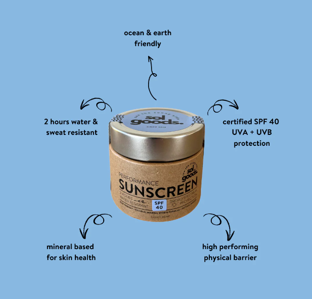 The search is over for a natural sunscreen that lasts the distance! Our sports performance sunscreen is the perfect partner for your next adventure with our 2-hour water resistant, sweat resistant, no sting formula. This sunscreen is a hit with surfers, divers, athletes, and outdoor enthusiasts.